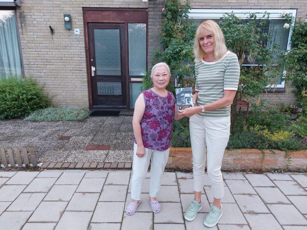 Maar even terug naar ‘de echte werkelijkheid’. Als ik bijvoorbeeld voortborduur op de vorige amuse, waarin we even stilstonden bij de olifant: ‘Aziatisch of Rotterdams?’ dan kun je vraagstukken daaromtrent ook natuurlijk op bewoners betrekken. Zo woont bij ons 2 deuren verder Fee Fee; ze staat hier naast Claudia: