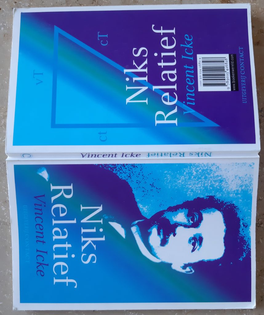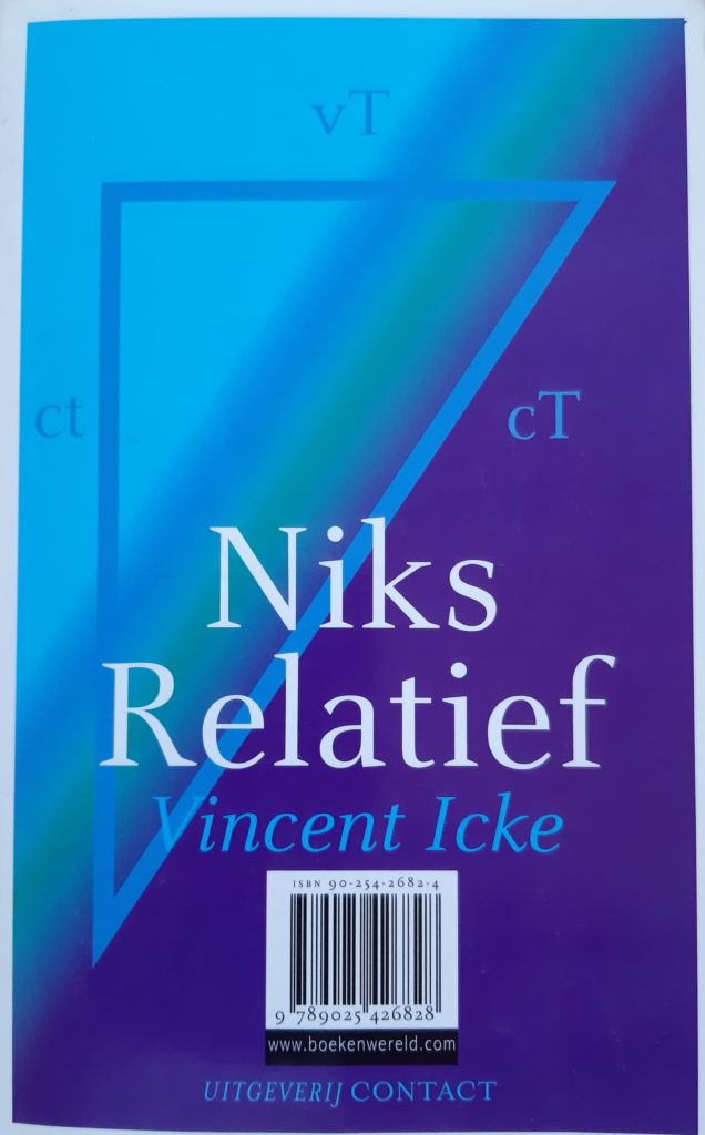 Terwijl Corona ons nog even bezig zal houden, zijn er inmiddels op de de jubileum-amuse ‘Tegendraads‘ heel gemengde reacties gekomen. Iemand vroeg zich af of ik van mening ben ‘dat iedereen wel een soort van gelijk heeft’, en of we daardoor niet te veel weg relativeren. Dat discussies in een zouteloos, waterig soepje eindigen; zo van ‘het is maar hoe je het bekijkt’. Tijd om eens te kijken of niet alles relatief is. Laten we te rade gaan bij de natuurkunde. Een goed begin is het boekje ‘Niks Relatief’, of anders gezegd, de boekjes ‘Niks Relatief’. Om je maar meteen in verwarring te brengen: kijk even naar de volgende afbeeldingen daarvan.