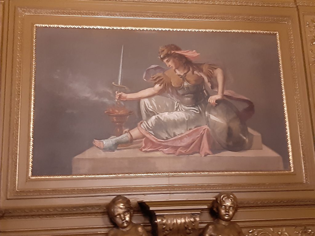 We werden er ook geattendeerd op de Vorstenspiegels; schilderijen die de vorsten moesten bepalen bij hun belangrijke taak voor het volk en de omstandigheden in het leven. Denk bijvoorbeeld aan een afbeelding van Justitia. Ik licht hier die met Athena er uit. Om even op te frissen, zie Wikipedia: “Grote eer genoot Athena ook als een godin van de werken en de kunsten van de vrede” en ook “… is zij, de godin van de reine, heldere aether, ook de godin van de helderheid van geest, van het bedaard en kalm overleg.“