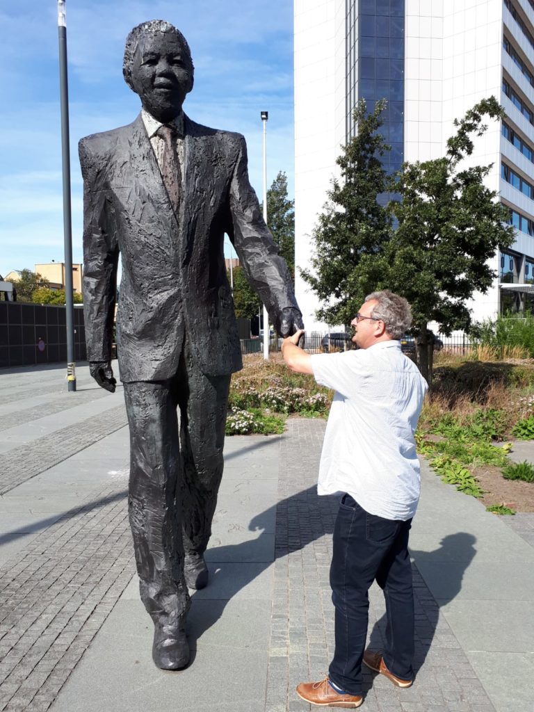 “Op 25 september 2012 is door Bisschop Desmond Tutu een 3,5 meter hoog standbeeld voor Nelson Mandela onthuld, vlakbij het Omniversum in Den Haag.“