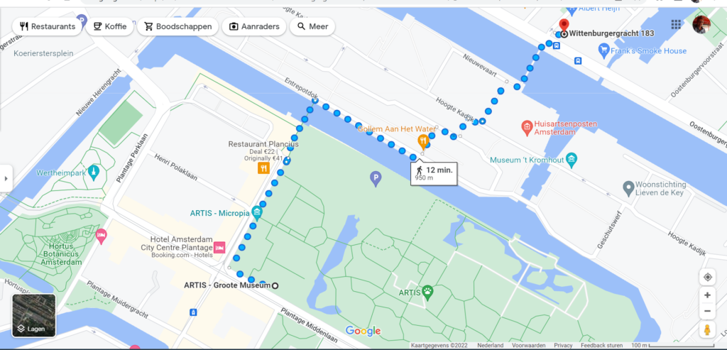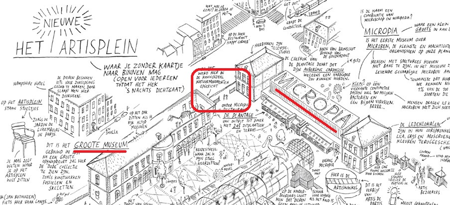 Nu geeft het een heel ruimtelijk effect; een ‘doorkijk’ naar het Artis-terrein; rechts-onder zie je de hoofdingang. Daarbij voelt het een beetje alsof je een lege plek in je mond hebt, omdat er een kies is getrokken; niemand ziet het, maar jij voelt het.