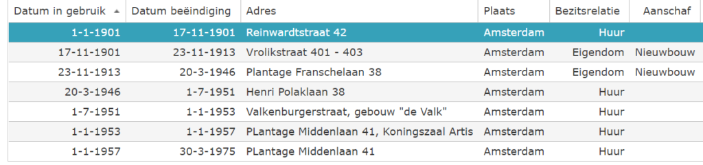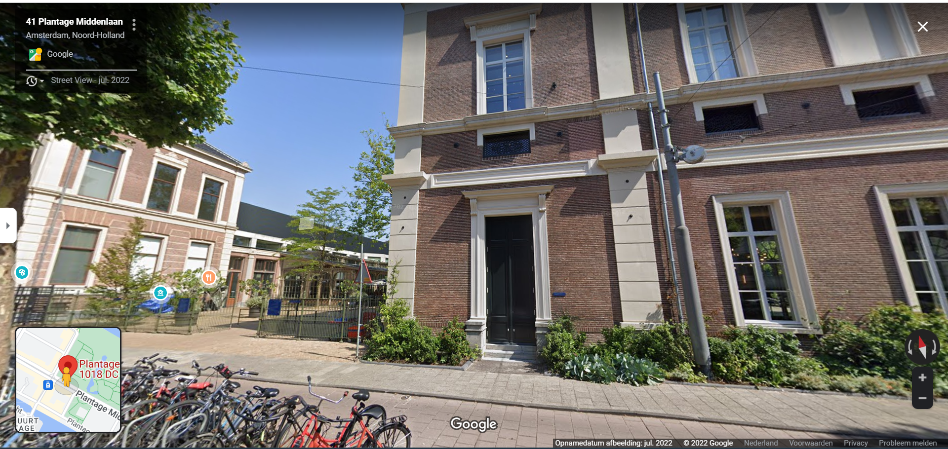 De ingang was de deur links van de boom op de foto, dus in het huidige Plantage Middenlaan 41, waar nu rechts het Groote Museum is gevestigd.