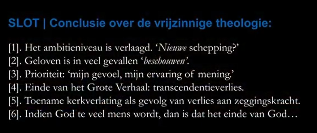 In zijn lezing over vrijzinnige theologie, eindigt hij de SLOT-sheet in de presentatie pessimistisch (de lezing duurt niet lang, maar je kunt eventueel doorscrollen naar de 29e minuut).